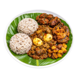 Rice & Beans + Ofada Sauce + Peppered Beef + Peppered Panla Kika